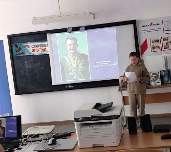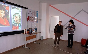В ходе мероприятия библиотекари, по слайдам презентации, рассказали ребятам о празднике – Дне космонавтики и авиации, вспомнили важные события, положившие начало космической эры. Школьники узнали, как выглядели первые летательные аппараты, искусственные спутники Земли, об учёных и самых знаменитых космонавтах и их подвигах, раскрыли удивительные факты из биографии Юрия Гагарина. С большим интересом участники мероприятия слушали о животных, которые побывали в космосе: собаках Лайке, Белке и Стрелке, обезьянках, крысах и кошках.
