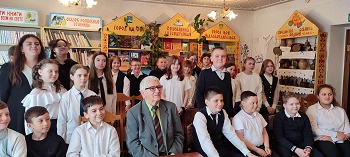 Затем автор прочитал стихи из своих сборников «Три звезды», «Родные корни», «Последний снег», «Ветер времени» и др. Ребята со вниманием слушали выступление поэта и подготовили его стихи «Даль степная – без конца и края...» (Якушина Екатерина), «Светлее зори над просёлком…» (Журавлёва Кристина), «Родничок» (Потапова Анастасия), «Потомкам» (Фридман Анастасия).От всех присутствующих, Галина Николаевна Кузнецова поблагодарила Валентина Митрофановича за интересный рассказ. На память о встрече было сделано фото.