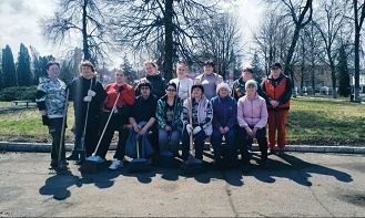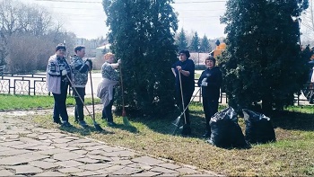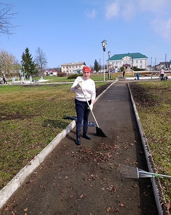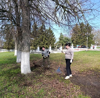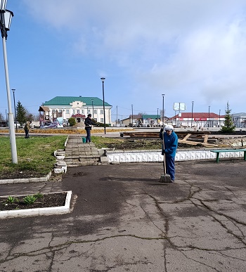 Библиотекари совместно с Отделом культуры и Домом культуры наводили чистоту и благоустройство на закрепленной территории на воинском захоронении, расположенном на территории Парка Победы.